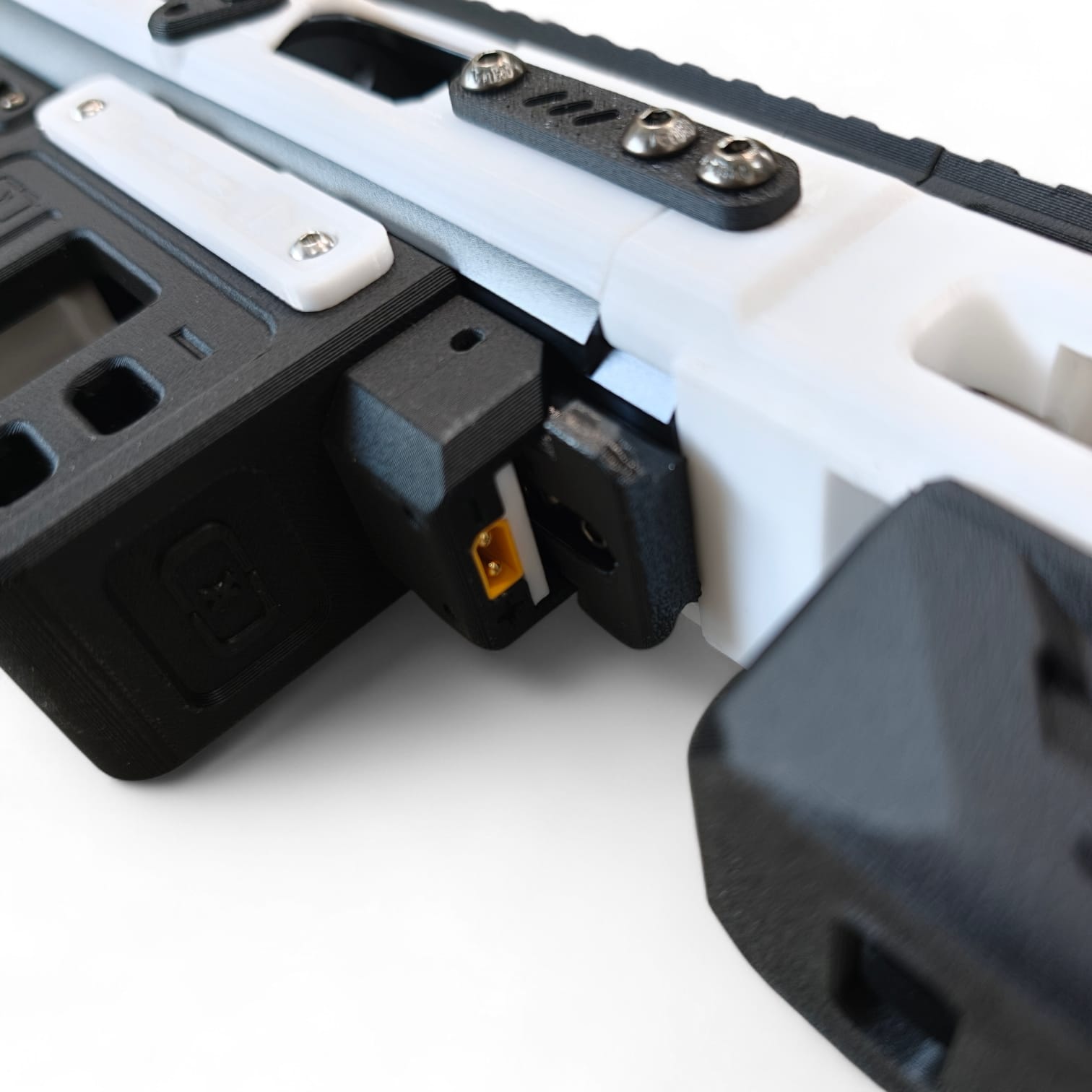 - Tool-free sliding battery door with integrated XT-30 connector for fast battery changes